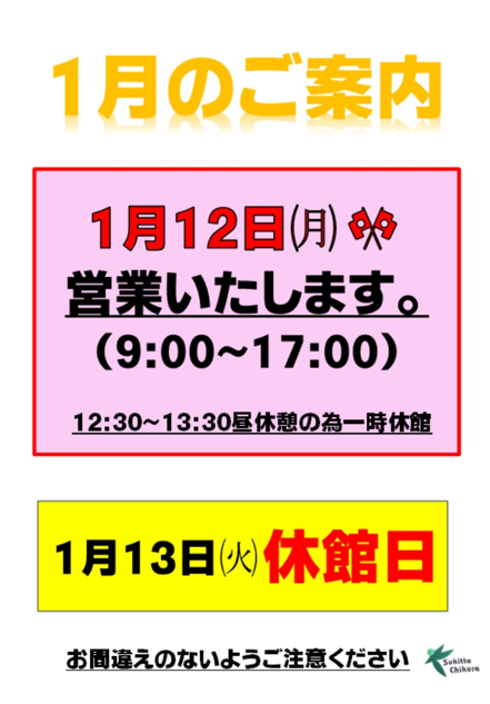 1月のご案内(祝日営業)